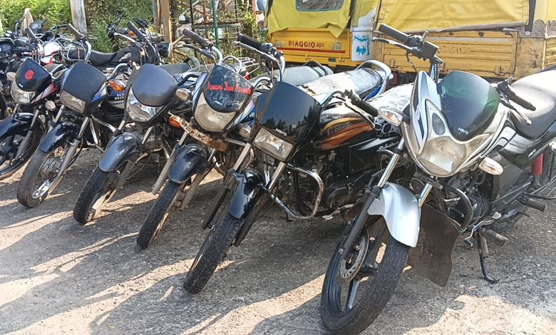 कब्जे से चोरी के 6 दोपहिया वाहन जब्त किए,